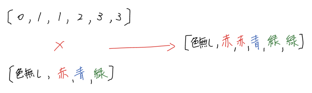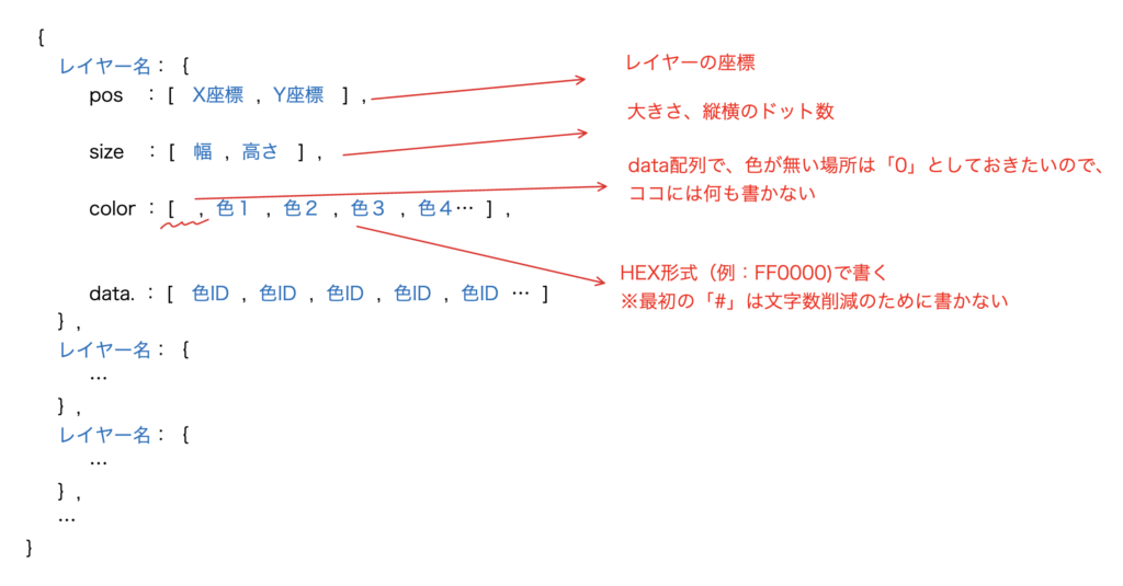 各ドットごとの色情報を格納した配列データを