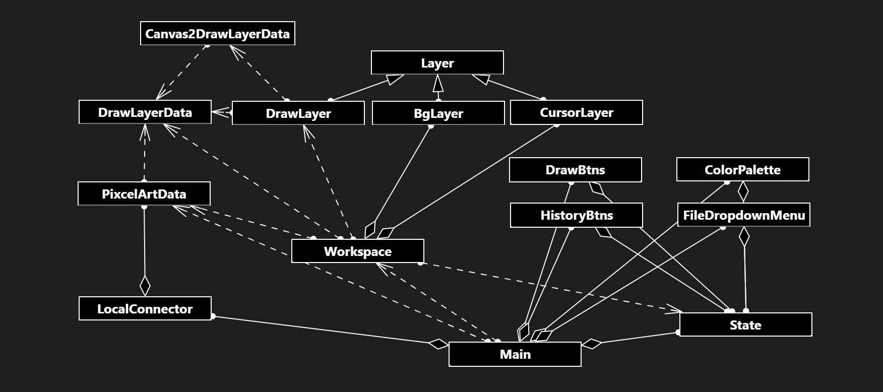 Workspaceの状態をPixcelArtDataクラスでデータ化できているので、