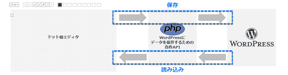 ※WordPressのREST APIを使えば、ドット絵エディタ側から直接データのやり取りができそうだが、