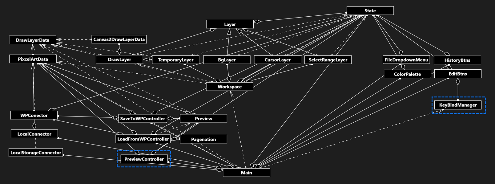 Mainから受け取ったPixcelArtDataを描画するシンプルな構造。