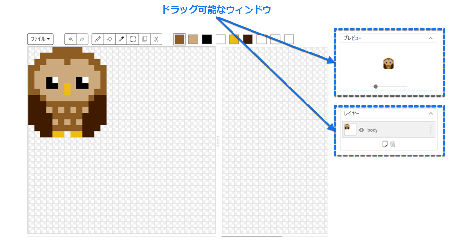 ドラッグ可能なウィンドウを実装し、エディタのレイアウトを自由に変更できるようにした。